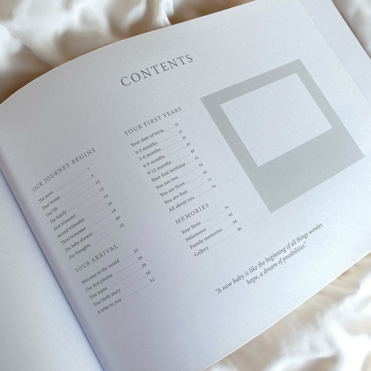 My Baby Book was created for you with your little one in mind. To show them everything throughout their first years in one place and to create your own personal story of your little one. Every book is created uniquely to your journey, and we hope our books bring you and your family joy when creating your baby book.